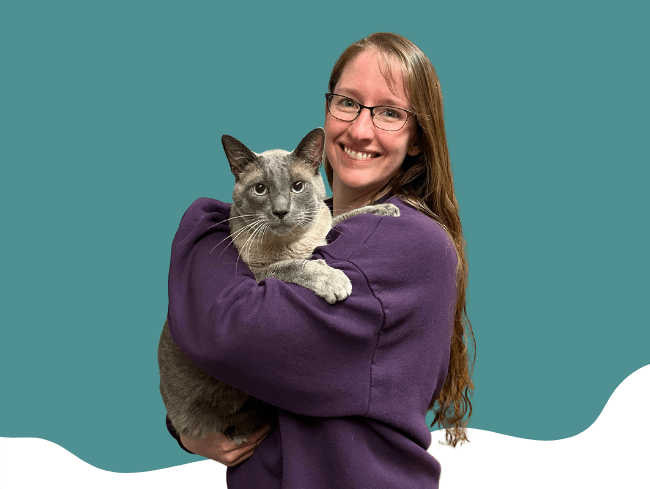 Rachel Cutright grew up near Effingham, Kansas and graduated from Atchinson County Community High School. These days she is living on the family farm with her husband, four kids, two dogs, seven cats, a small herd of Nigerian Dwarf goats, and a flock of chickens. Rachel began working for Banner Creek Animal Hospital in April 2024 as a Receptionist. In her free time, she enjoys gardening, quilting and snuggling her baby goats.